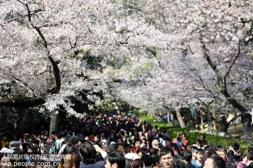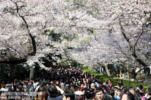 桜の名所で知られる湖北省の武漢大学。有名度は北京の清華大学のイチョウの木と同じほどで、毎年3月中旬になると、桜が満開になる。そして、文化的な雰囲気漂う大学に咲く桜を一目見ようと多くの人が訪れる。