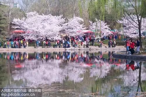 北京で有名な桜の名所・玉淵潭公園は、先祖を祭る中国の伝統的な祭日「清明節」(今年は4月4日)の頃に桜の見ごろを迎える。同公園には約20品種の桜が2000本近く植えられ、早咲きの桜と遅咲きの桜があるため、見ごろが1カ月も続く。