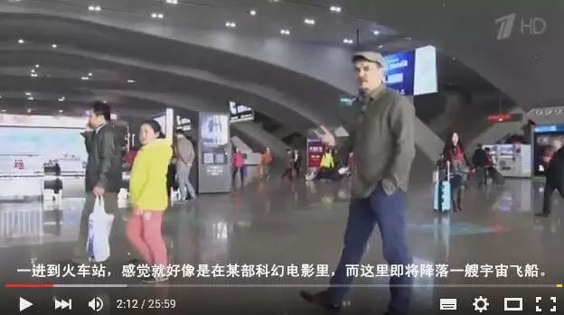 「中国は、世界一速い鉄道を建設した。では、世界一長い高速鉄道はどこにあるのだろう?もちろん中国にある!」「僕が1995年に初めて中国を訪れたとき、列車の時速は50キロメートルくらいだった。だが、今では、(驚きのポーズで)平均時速が300キロメートルに達している!」と彼は紹介を続けた。