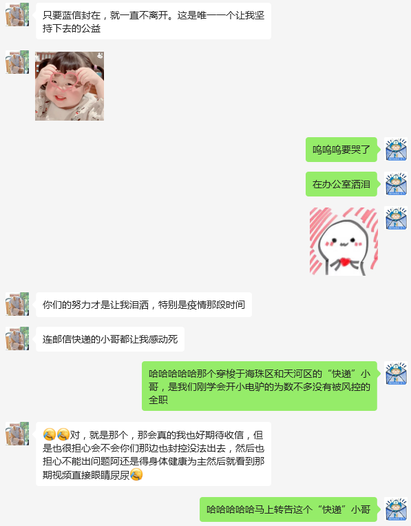 这种意想不到的联结,常常会幻化为一句留在蓝信封捐赠平台留言区里的一句真诚但简约的感谢。