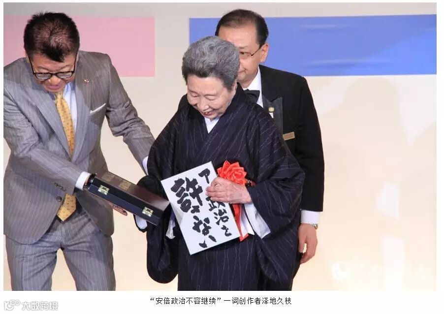 获奖者为这一政治口号的创作者、日本女作家泽地久枝。安倍政权在日本国会强推旨在使日本获得更为宽松的军事活动环境的安保法案,反对该法案的泽地久枝提出了这一口号,今年7月份,参加反安保法案的游行民众开始大量使用该口号。