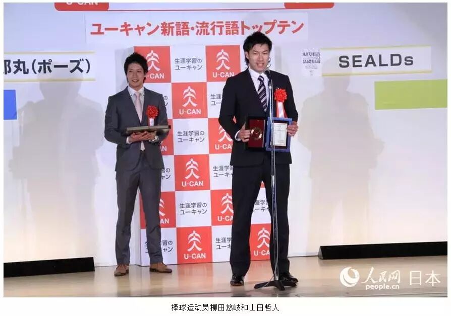 获奖者为日本橄榄球队队员五郎丸步。日本橄榄球队在今年的橄榄球世界杯上取得历史性突破,赢得3场比赛,日本橄榄球队因此受到关注。队员五郎丸步在比赛中的一个颇具个性的姿势也成为热门话题。