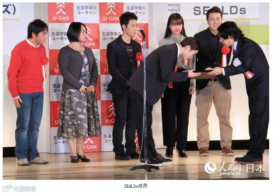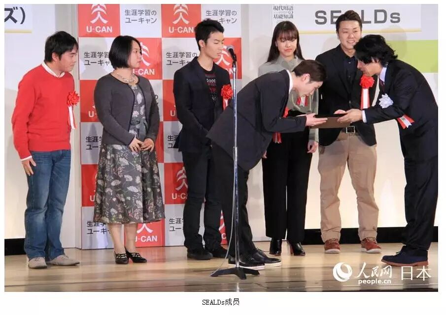 获奖者为奥田爱基。SEALDs是一个成立不久的日本学生组织,奥田爱基为该组织主要成员。该组织因参与今年的反安保法案而受到日本社会关注,该组织一定程度上改变了人们对日本年轻人不关心政治的既有印象。