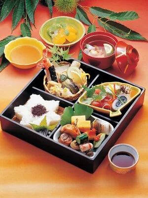 而松花堂便当指的是放在四边形盒子里的便当,盒子里被十字挡板分隔开,常出现在简易版会席料理的餐桌上。其名字源自于日本江户时代初期的高僧松花堂昭乘的置物盒。