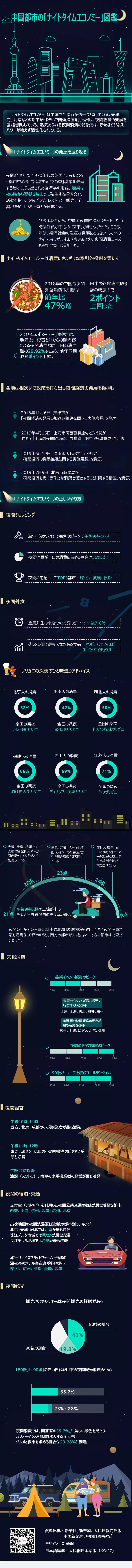 「阿里巴巴(アリババ)『ナイトタイムエコノミー』報告」によれば、外食、ショッピング、映画など夜間消費の成長ペースが速く、夜間消費は深夜ビジネスの活力もかき立てる。一線都市・二線都市の口コミ人気店の83%が午後11-12時に営業し、60%以上が12時を過ぎても引き続き営業するという。