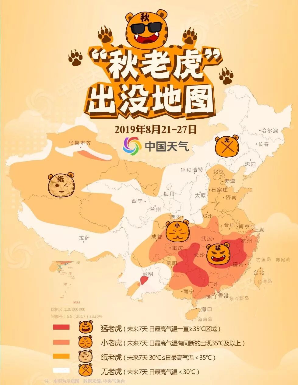 中央气象台预计,未来七天,南方热度不减。“秋老虎”要发威了吗?全国“秋老虎”出没地图出炉,快来看看哪里会被“咬”。