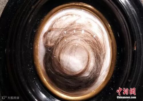 2014年に米国で出品された、ベートーベンが1827年に残した二筋の髪の毛(撮影・毛建軍)