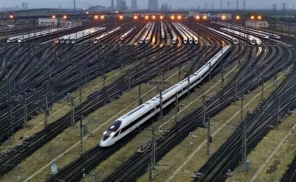 天津の高速鉄道用停車場を発車する「復興号」(資料写真)。