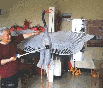 張天偉氏は伝統的な凧に風力機械伝動装置を搭載することで、凧を空に揚げられるだけでなく、凧に「命」を吹き込み、生き物のように動かすことに成功した。
