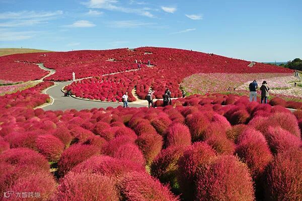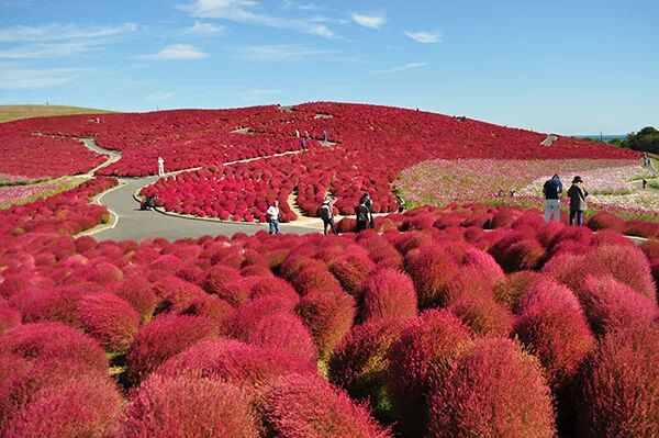 国营常陆海滨公园,从水户站乘坐电车和巴士大约30分钟即到。公园里一年四季开满了各种鲜花,其中,春季的粉蝶花和秋季的扫帚菜是必看之物。当广阔的“眺望之丘”铺满450万株蓝色粉蝶花时,其光景犹如梦幻世界一般。在秋季,随着毛茸茸的扫帚菜叶子变红,整个大地仿佛是一片红色的海洋,堪称绝景。