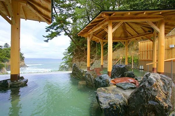 该温泉设施群位于茨城县北部临海地区的五浦海岸,这里曾经是近代美术先驱冈仓天心从事创作的地方。