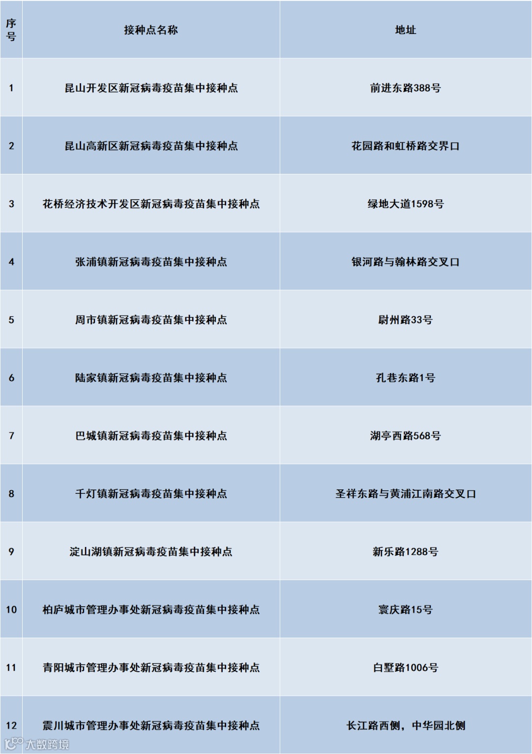 昆山一批新冠疫苗集中接种点陆续启用!接种点地址见表格: