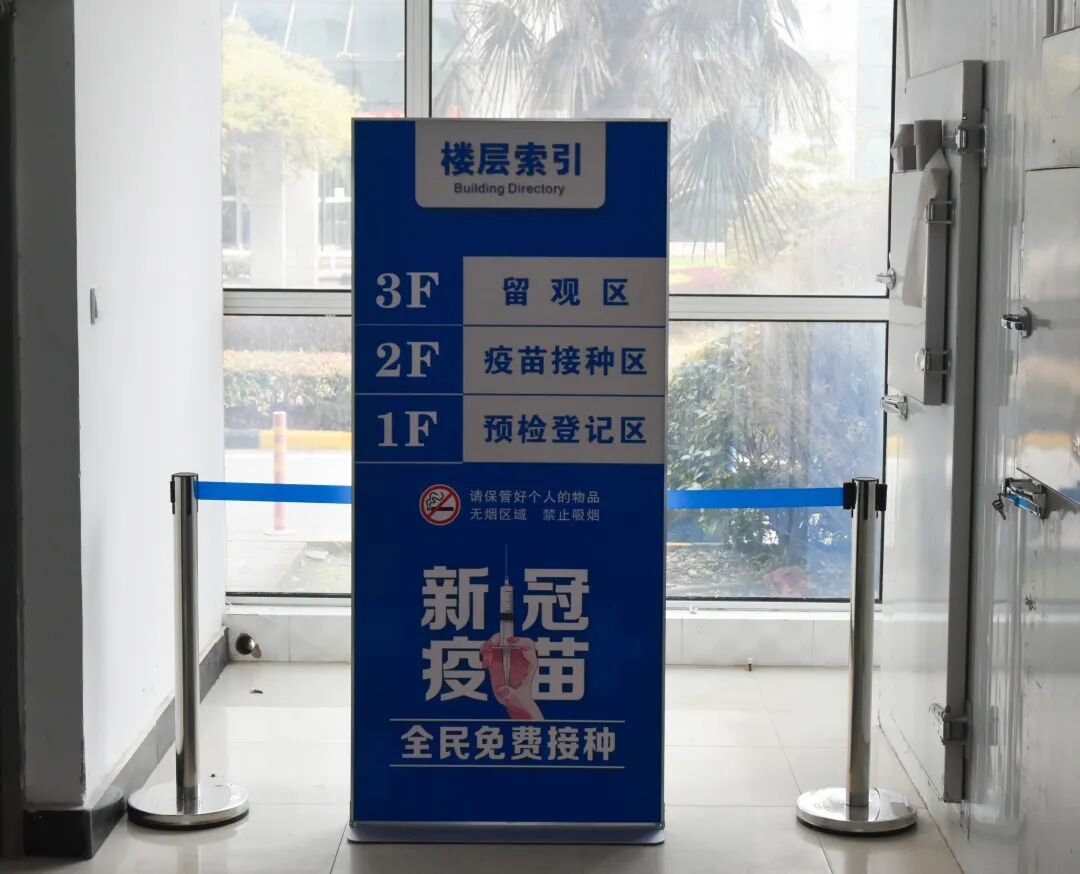 发展大厦新冠疫苗集中接种点分为三个楼层:一楼是健康申报区和预检登记区,二楼是疫苗接种区,三楼是留观区。