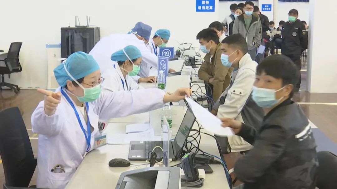 目前该方舱接种点设置有询问登记台24个,接种台28个,单日最多可完成4000人次的接种量。