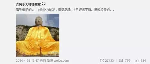 4月はついていなかったけど、これを転載さえすれば5月には必ず良い事が起きるという「御利益のある」画像(微博掲載画像)。