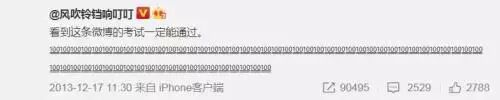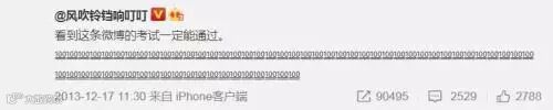 テスト前に転載すると絶対合格できるという「ありがたい」投稿内容(微博掲載画像)。