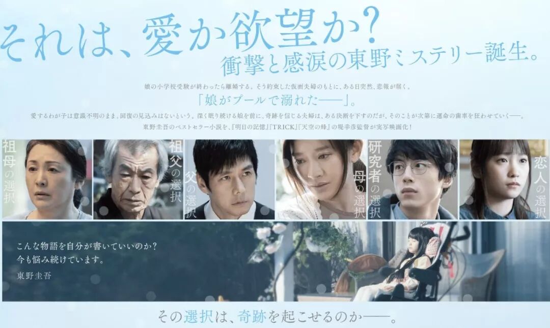 東野圭吾の作家デビュー30周年を記念して書かれた「人魚の眠る家」を映画化した同作品は、11月6日に日本で公開される。東野圭吾は、「この作品の映画化はとても難しかったと思う。映画では小説に僕が込めたものをうまく表現されていて、監督や役者は本当にプロフェッショナルだ」と、映画化した堤監督を絶賛している。