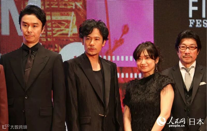《半世界》剧组长谷川博己、稻垣吾郎 、池胁千鹤、阪本顺治(从左至右)亮相红毯仪式。