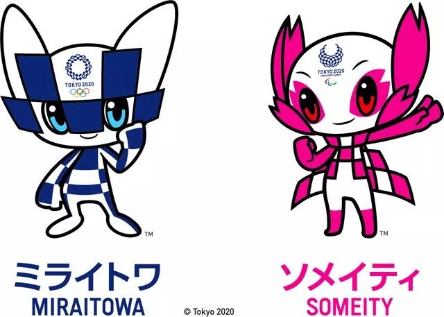 2020年东京奥运会吉祥物与会徽一致,融合了日本传统“组市松纹”,被命名为“miraitowa”,意为“未来(mirai)”和“永远(towa)”。而粉色的残奥会吉祥物则被命名为“someity”,将具有代表性的日本樱花“染井吉野”与英文“so mighty(强有力)”结合在了一起。“miraitowa”和“someity”均被设定为生活在数字世界里的人物,可使用互联网在数字世界与现实世界之间自由往来。其中“miraitowa”的特技为瞬间移动, “someity”则可以使用超能力。