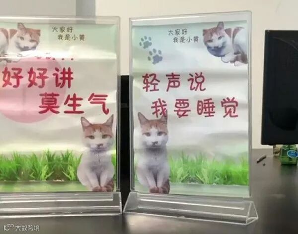 職員たちは黄ちゃんにワクチンを打ち、基本的なしつけをすると、穏やかな性格の黄ちゃんはたちまち人々に慣れていったという。工商所では毎日のように仲裁が必要な案件が数多く持ち込まれる。責任感の強い黄ちゃんは「本業」のネズミ退治を終えると、自ら進んで仲裁役を引き受けるようになった。仲裁にやって来た人がイライラしたり、言い争いになりそうになると、黄ちゃんはスッとその人たちの足元に体を寄せ、まるで「喧嘩しないで。落ち着いて」と言わんばかりに、なだめにかかる。黄ちゃんというこの可愛らしい仲裁役のおかげで、仲裁にやって来た人も落ち着きを取り戻し、話し合いを進めることができるのだという。黄ちゃんはその勤務態度の素晴らしさと真面目さから、親しみを込めて「みんなの小さな仲裁役」と呼ばれている。