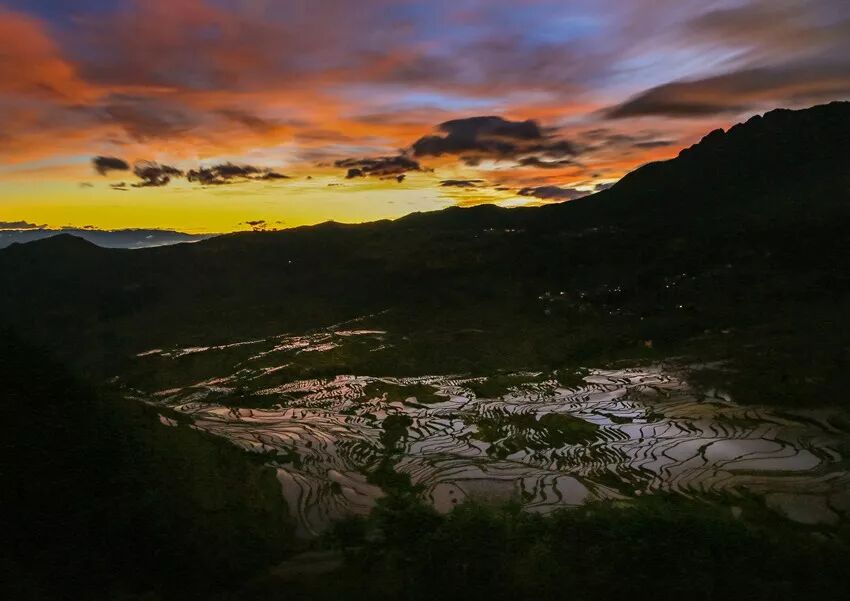 「朝焼けが棚田に張った水に映し出されて、とても幻想的な情景でした。」