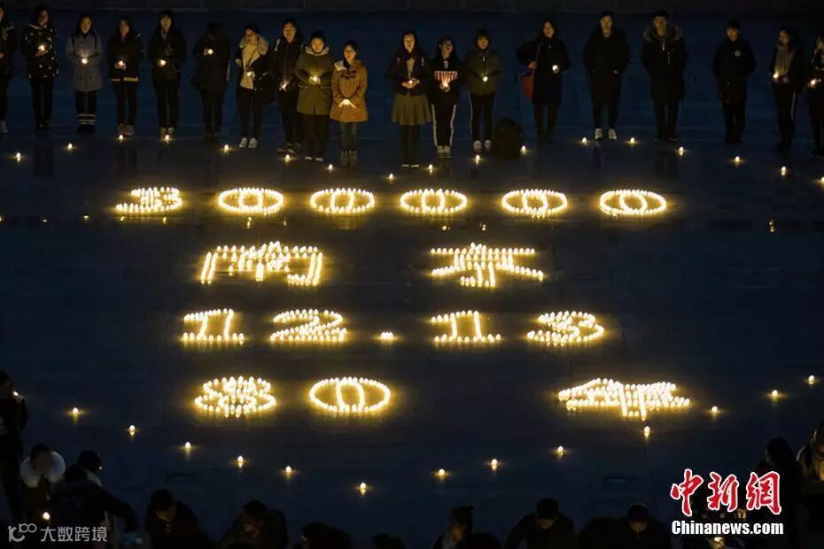 今年で4回目となる南京大虐殺犠牲者国家追悼日を間近に控えた11日夜、南京師範大学の大学生たちは同大学の仙林キャンパス敬文広場で、ろうそくを使って「300000、南京、12.13、80年」の文字を作り、南京大虐殺の犠牲者たちを追悼した。この活動に参加したある学生は、「このキャンドルナイトは『歴史を心に刻み、国辱を忘れない』ようにするために行われている。恨みは忘れてもいいが、歴史は永遠に心に銘記すべき。中国の新しい世代の若者として、今ある平和を大切にし、あらゆる戦争に反対し、国辱を忘れず、中国を発展させる必要がある」と語った。