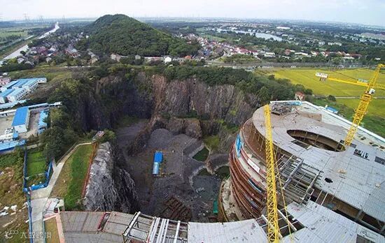 8年余の建設期間を費やし、上海松江国家風景区■山(■は人かんむりに示)の山麓に建設されている「深坑ホテル」はこのほど、最後の内装工事段階に入った。資金6億元(約100億円)を投じた同ホテルは、かつて鉱山だった深さ80メートルの廃坑に建設されている。