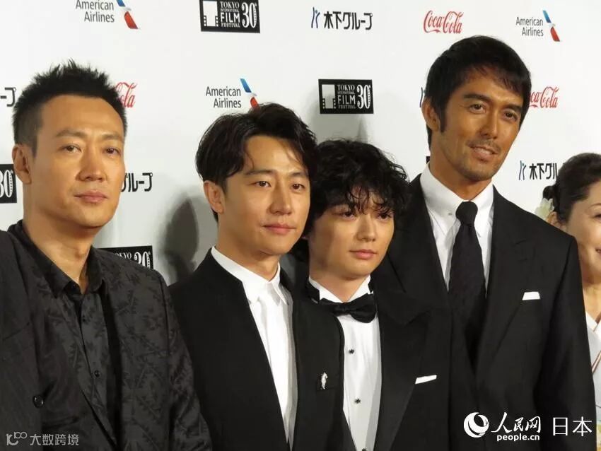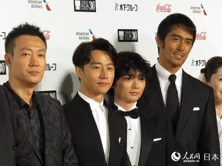 参演陈凯歌导演新片《妖猫传》的中国演员黄轩、辛柏青、日本演员染谷将太、阿部宽以共同亮相红毯