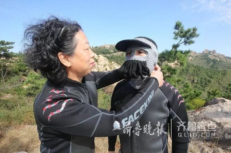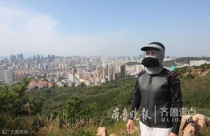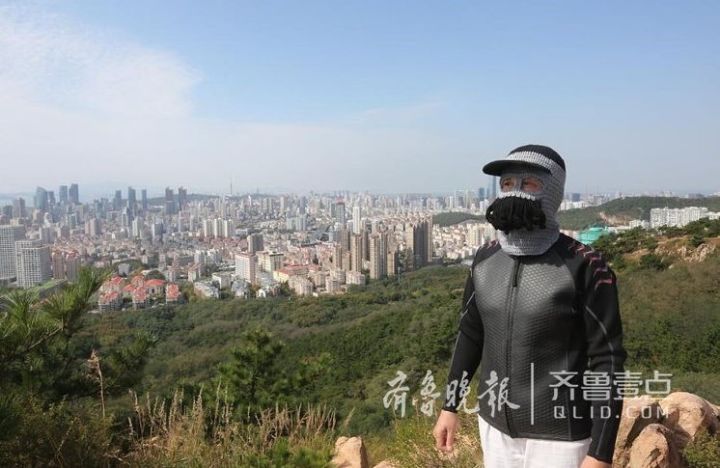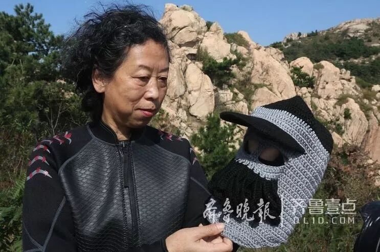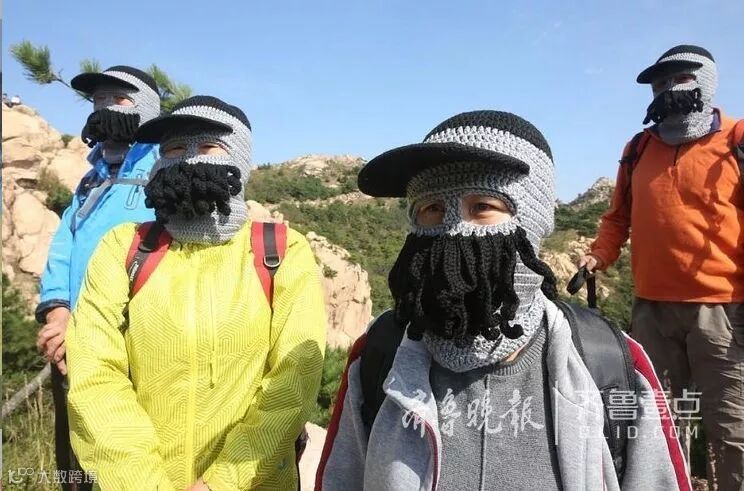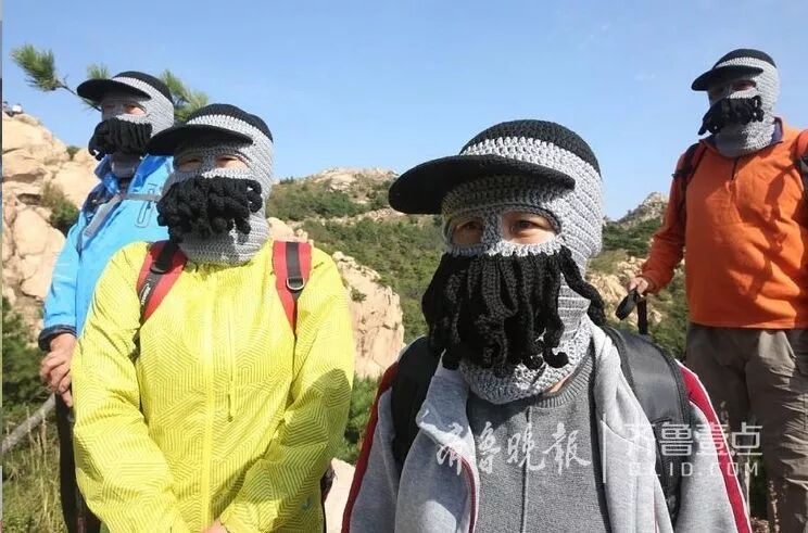 青島のおばさんこと、「フェイスキニ発明者」である張式範さんは山東省青島市浮山の山頂で15日午前、自身が製作した第7弾の冬用フェイスキニの新作を発表した。このフェイスキニは毛糸を編んで作られており、帽子のつばを加えているほか、口元には黒いヒゲのようなものがあり、見た目はまるでタコ。