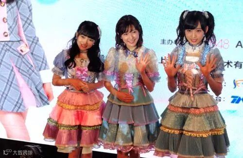 「中日友好文化交流の旅」のスタートセレモニーに登場したAKB48のメンバー3人
