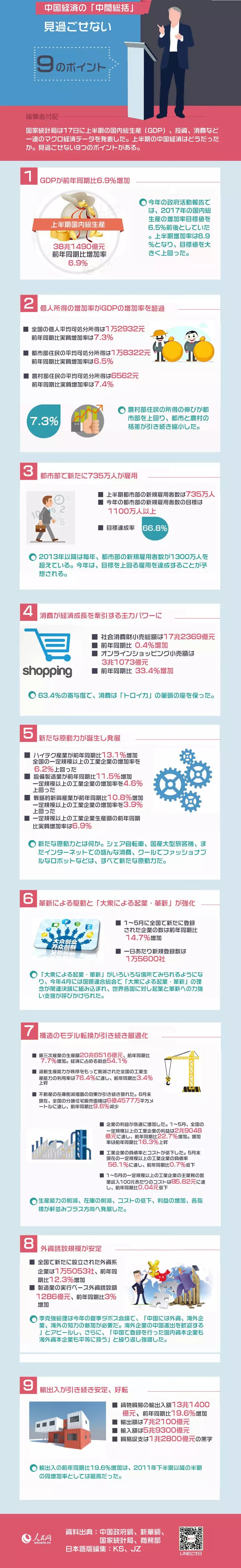 国家統計局は17日に上半期の国内総生産(GDP)、投資、消費など一連のマクロ経済データを発表した。上半期の中国経済はどうだったか。見過ごせない9つのポイントがある。
