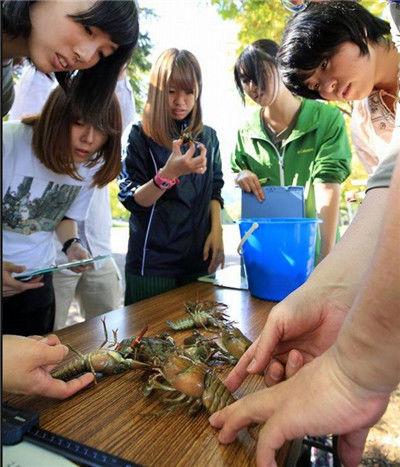 北海道釧路市阿寒湖の近くでは毎年夏から秋にかけて、中国人にとっては馴染み深い水の中の生き物であるザリガニを捕りにくる人がやって来る。しかし、地元の人々は食べるためにザリガニを捕っているのではない。こうした外来生物の分布拡大を厳しく規制し、湖の生態系破壊防止に努めているのだ。湖の中にカゴを入れると、毎回あっという間に数十キロ分のザリガニを捕ることができる。