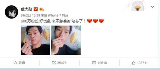 「銀魂」の単行本は累計発行部数が5100万部を突破しており、「週刊少年ジャンプ」の看板コミックとなっている。そして、中国でも大人気で、「銀魂」の大ファンであることを公言している芸能人も多い。俳優の魏大勛も最近、2日連続で自身の微博で、エリザベスと写る画像やエリザベスのお決まりのポーズを披露し、「人生に無駄な道なんてない。どの一歩も大切!」と書き込んだ。そして、フォロワーへの感謝の気持ちのほか、「銀魂」が表現している「これが自分。天下無敵」という価値観に強く賛同する思いをつづった。この投稿の後、数万人のネットユーザーが反応し、「魏氏もエリザベスのファンだったなんて」とコメントしている。