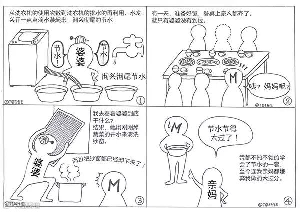 日本妻子M(在华24年,两个孩子在读高中和大学):在和公婆同住的日子里,我用洗衣机也会被限制。婆婆极度节约用水,连洗衣机里的脏水和焯过蔬菜的水都要囤积起来循环利用,不知不觉我也养成了这样的生活习惯,结果被自己的亲妈嫌弃。