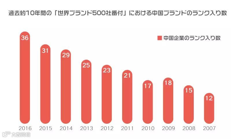 革新が駆動する発展戦略が推進されるのにともない、中国は今、製造大国から創造大国へとモデル転換しつつあり、ますます多くの中国ブランドが海外に進出し、エネルギー、電気通信、製造業から、メディア、インターネット産業まで、世界ブランド500社番付に名前を連ねる「中国チーム」も急速に拡大し発展している。