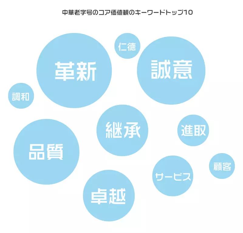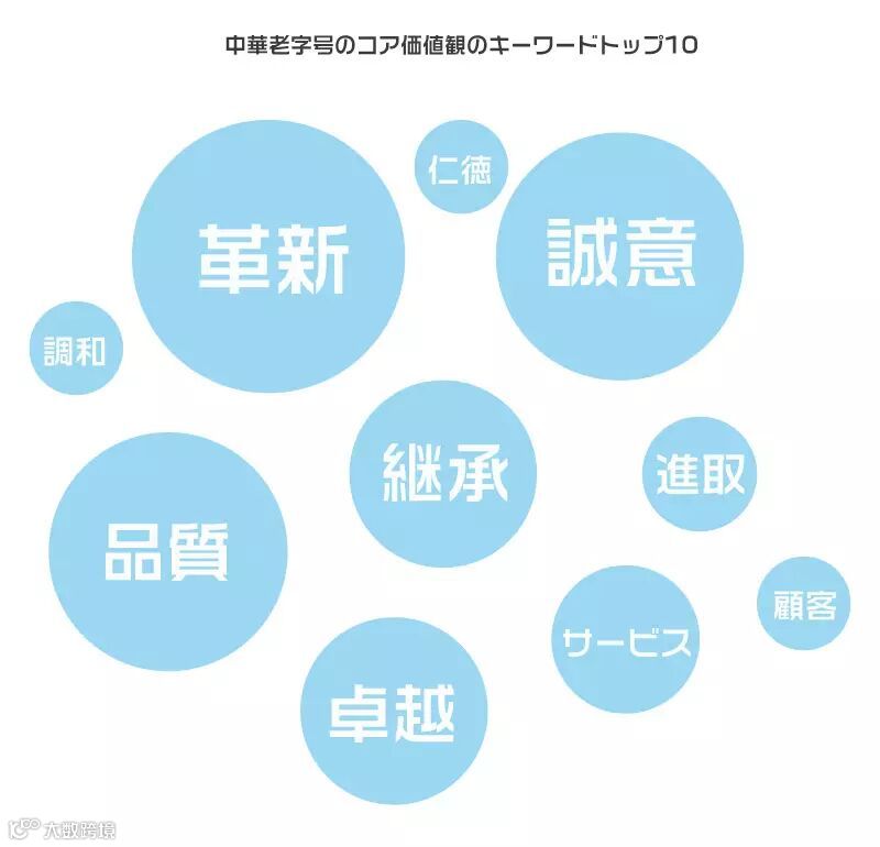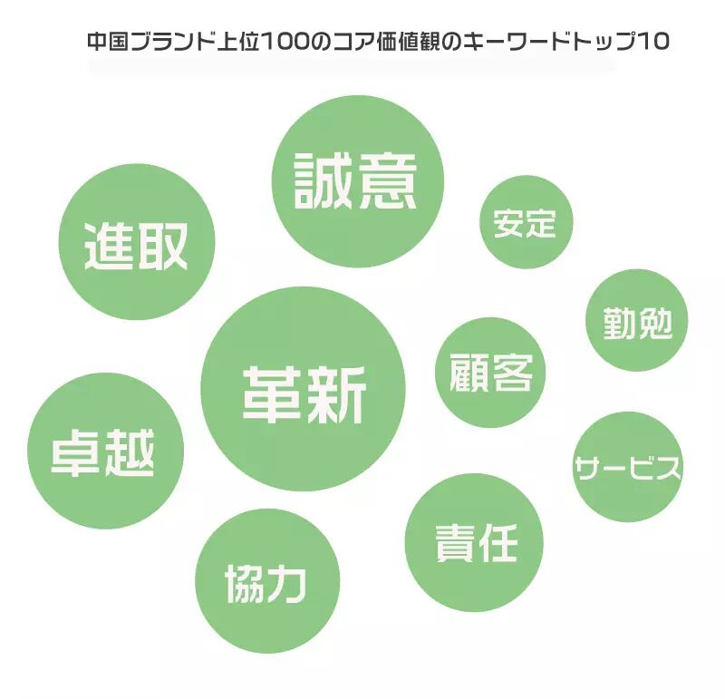 中華老字号は100年に及ぶ継承の歴史の中で守り抜いてきたものがあり、継承の中で絶えず革新を試み、誠意を重んじて慎重の上にも慎重を期し、卓越した品質を追求してきた。ブランドの新星たちは上位100に名を連ねるにあたってそれぞれに得意分野があり、安定しつつ新しいことにチャレンジし、人材を活用し、サービスを重視し、誠意を大切にし、責任を果たしてきた。老舗でも上位100企業でも、各社ホームページの企業文化を紹介するページをみると、革新、誠意、卓越、進取という共通の価値観が中国ブランドのいつまでも色あせない真面目だということがわかる。