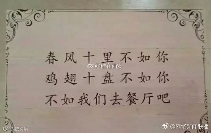 你说你要减肥,这事包在我身上,你的那份饭我随时可以吃掉……说起这十八首三行情书,全都是餐厅负责人的创意。食堂负责人德宝朕:“我觉得食堂是大家一天三餐吃饭的地方,应该加点东西。”