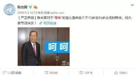 国連公式微博による彼らに対する答えは、「『青年』の年齢区分について、国連は、15歳から24歳までと定義している」というものだった。