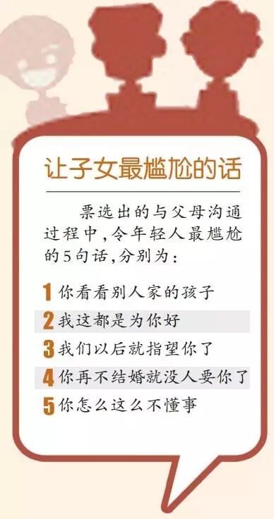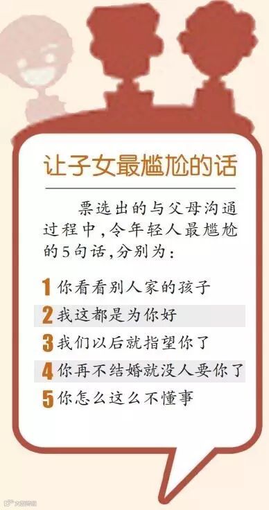「よその子を見てご覧なさい」、「全てあなたのため」、「これからはあなただけが頼り」、「これ以上結婚しなかったら行き遅れよ」、「どうしてそんなに言うこと聞かないの」などなど。これらはきっと誰もが聞きなれたフレーズではないだろうか。そしてそのほとんどが両親との間、もしくは子供たちとの間で交わされる会話出てくるに違いない。中国放送網が伝えた。