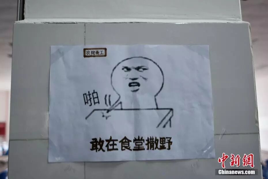 四川農業大学の食堂に貼られたブラックユーモア満載の注意書きが、ネット上で話題となっている。 注意書きにはおかしな写真に、「お残しは許しまへんで」「食堂でいい気になるなよ」「黙ってメシ食え」などのキャプションが付されている。