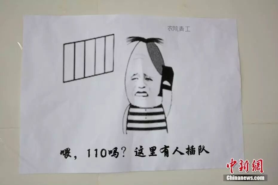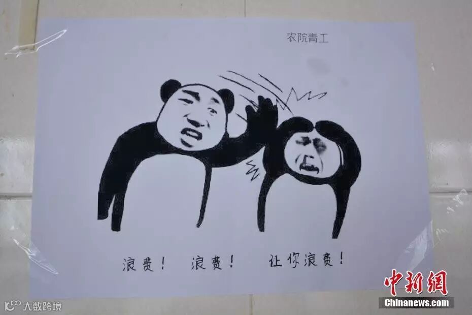 四川農業大学の職員によると、これは農学部の生徒が自発的に作ったもので、食べ残しをなくし、列に並ぶよう生徒たちに訴えている。