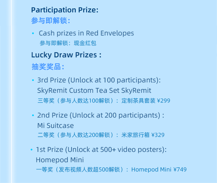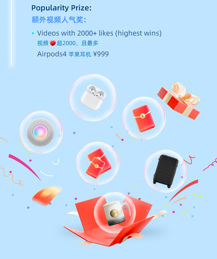 参与即表示您同意我方在宣传中使用您的视频,包括但不限于微信渠道、X(推特)、脸书以及Instagram。