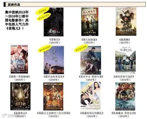 11部展映影片均为话题之作,包括《老炮儿》、《夏有乔木雅望天堂》、《狼图腾》、《漂洋过海来爱你》、《唐人街探案》、《谁的青春不迷茫》、《我最好朋友的婚礼》、《西游记之孙悟空三打白骨精》、《微微一笑很倾城》、《卧虎藏龙青冥宝剑》。
