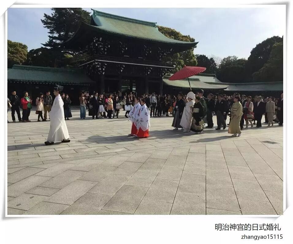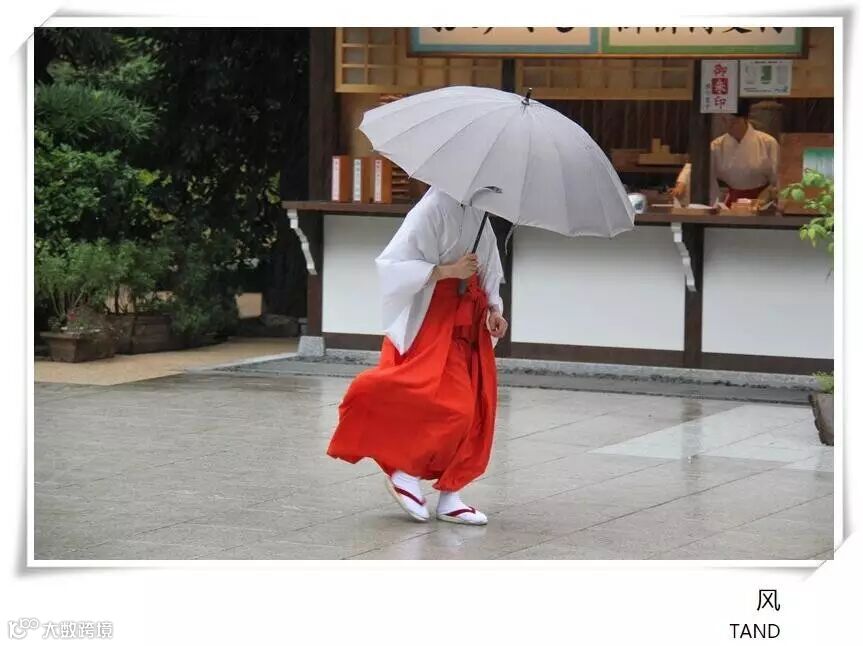 台风,雨季,东京大神宫求缘的人络绎不绝。突然一阵大风,神宫工作人员撑伞飘逸走过。
