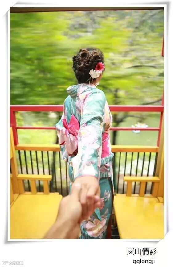 每到一个地方,我就会牵起她的手拍张拉手照。尤其是这次穿和服的她,搭乘嵯峨野小火车,如此具有日本风情。希望我俩就这么慢慢的一起变老。