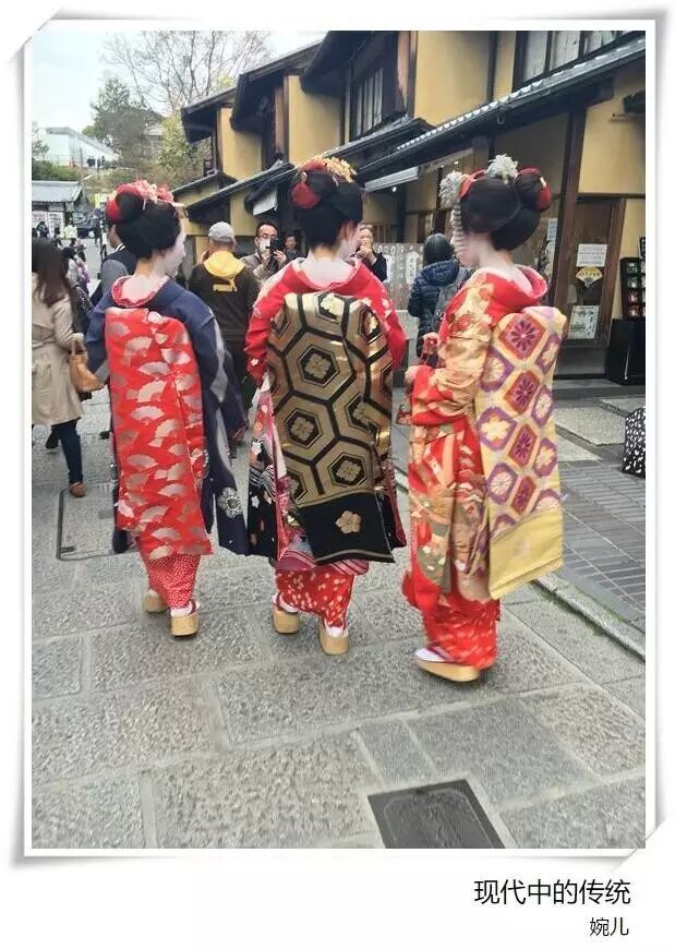如今,走在高楼林立车水马龙的繁华都市里,依然可以看到身着和服的男男女女老老少少。一颦一笑,举手投足,让人恍然中仿佛乘着这悠扬的“和风”回到从前。也正是这古今碰撞带来的巨大文化冲击,让和服成为外国游客镜头中不可或缺的元素。
