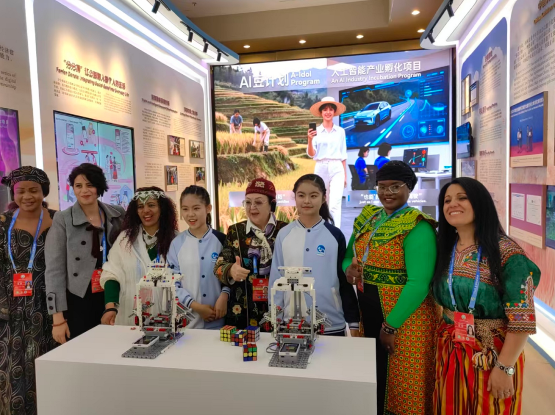 10月14日,全球妇女峰会配套活动“数智赋能妇女和女童成果展”在中国妇女儿童博物馆开展,本次展览以“数智赋能:平等、创新、共享、发展”为主题,运用AI、VR等技术手段,充分展现在数字中国建设过程中妇女所发挥的重要作用以及数智赋能妇女和女童所取得的突出成就。蚂蚁公益基金会和中国妇女发展基金会联合发起的“AI豆计划”人工智能产业孵化项目和“加油木兰”公益保险项目作为案例入选展览的公益参与板块。当日,各国参会代表前往中国妇女儿童博物馆参观展览,加纳、多米尼克、莫桑比克、斯里兰卡等国代表在“AI豆计划”及“加油木兰”展位参观点赞。