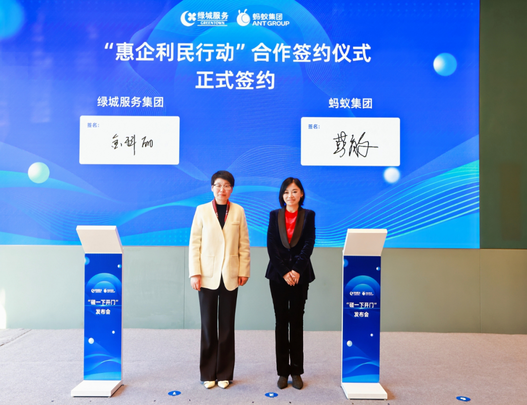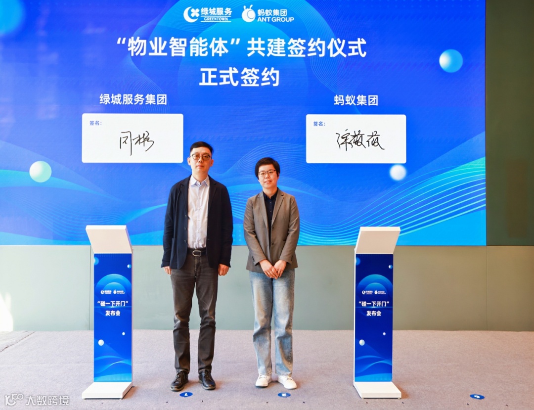 11 月 26 日,蚂蚁集团联合绿城服务正式发布“碰一下开门”解决方案,并就“惠企利民行动”、“物业智能体”共建达成战略合作。