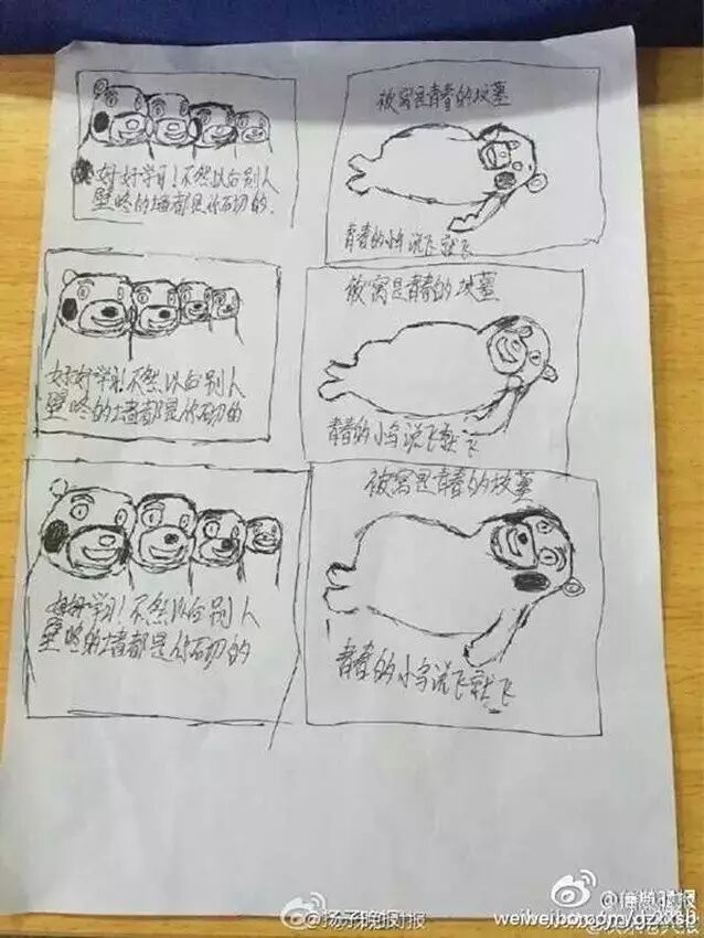 对于如此创新的手法,有网友留言大赞该名辅导员“这惩罚太有创意!”,“能适当提醒学生”;更有网友留言笑称,学生的作品将熊本熊表情画得像猪一样,“老师会不会笑翻在地”、“这是一堂美术课而并非惩罚”。