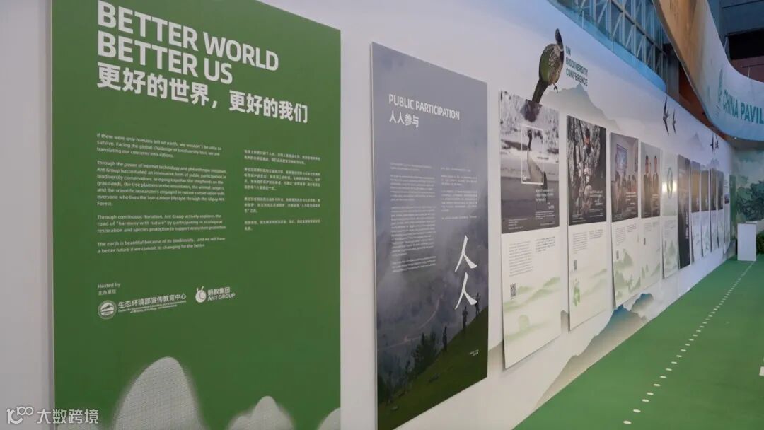蚂蚁集团还在 COP 15 “中国角”举办了主题为“更好的世界、更好的我们”的互动展览,向来自各国的参会者介绍“蚂蚁森林”等项目联动社会各界参与的创新模式及实施效果,展现中国社会组织和企业近年来在生物多样性保护领域的丰富实践。